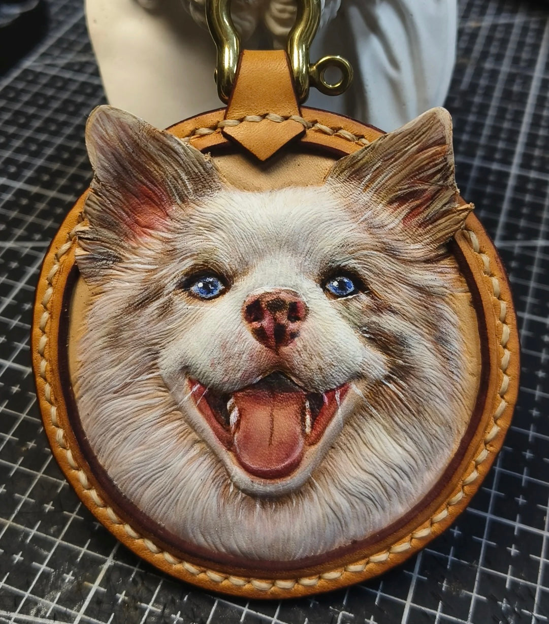 Your pet keychain isn't just a product—it's a tribute. Handcrafted by our master leather artists, each piece is sculpted and painted with the goal of capturing your pet's soul in every detail.